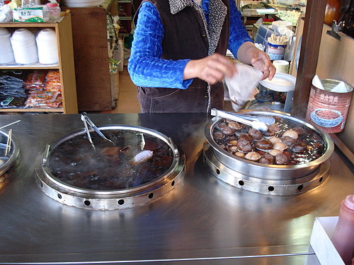 來到商店區,路邊有賣茶葉蛋和魯豆干~ 吃一點補充體力..