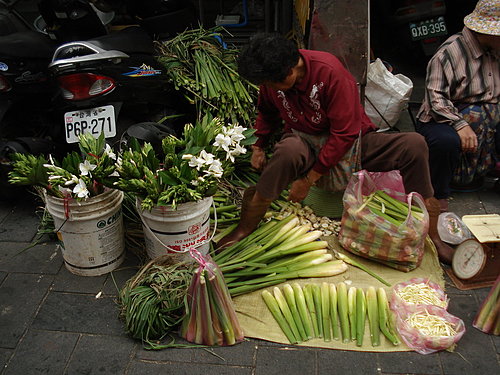 老街上賣野薑花和美人腿 (皎白筍)的攤子很多~ 正在盛產皎白筍..