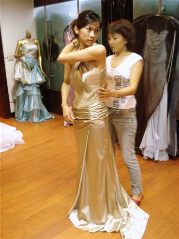 這是某位千金要在圓山飯店宴客的訂作禮服,
