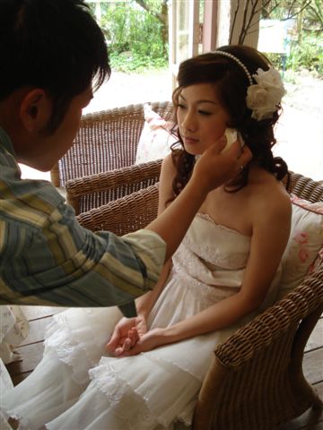 第一套拍攝完畢後,在現場簡易補妝~