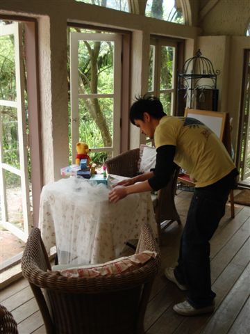 這位是我們的攝影師,正在佈置擺飾,