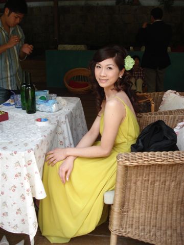 此時,PEGGY已經換上了芥末黃希臘風禮服,